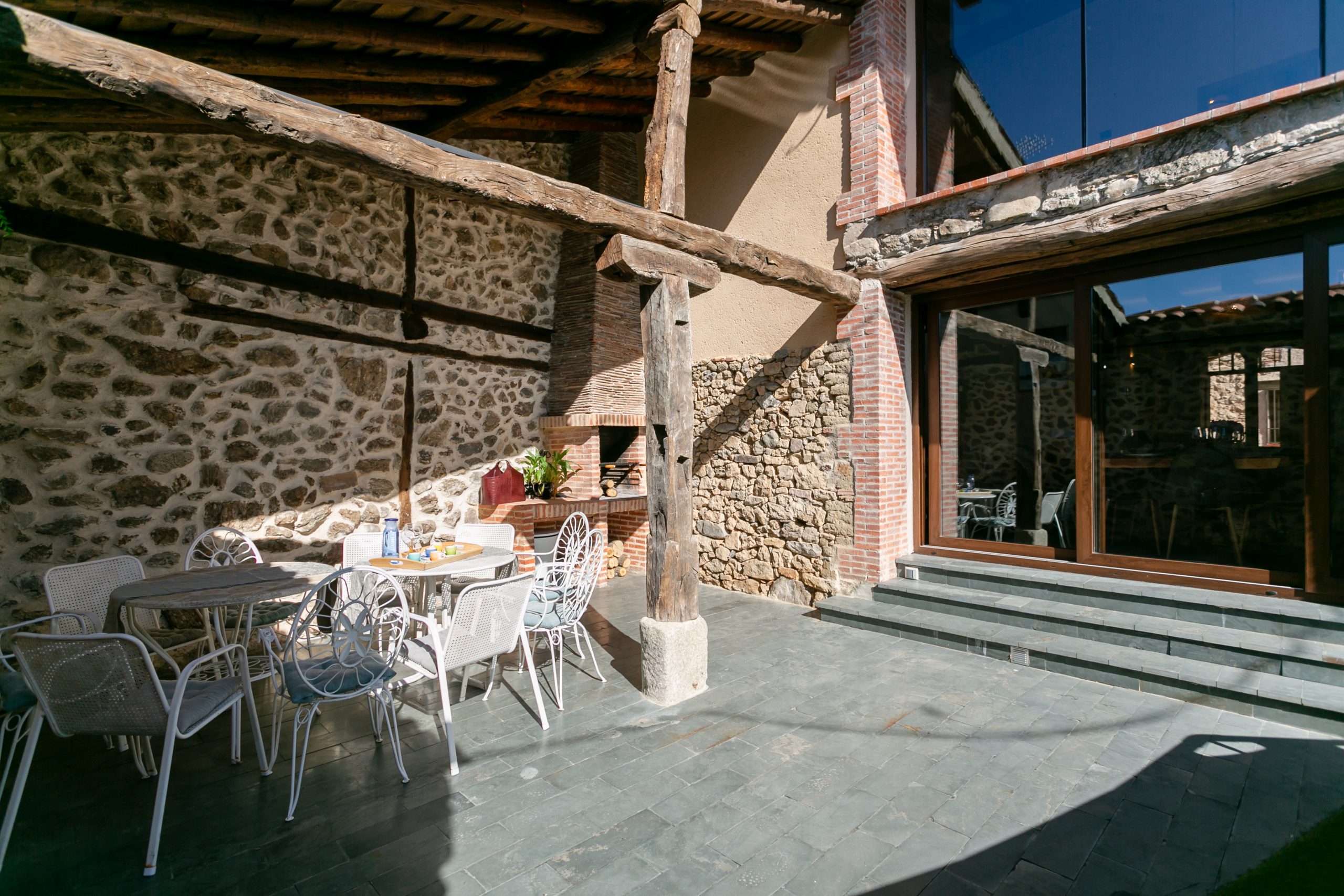 Terraza-jardín con barbacoa y piscina